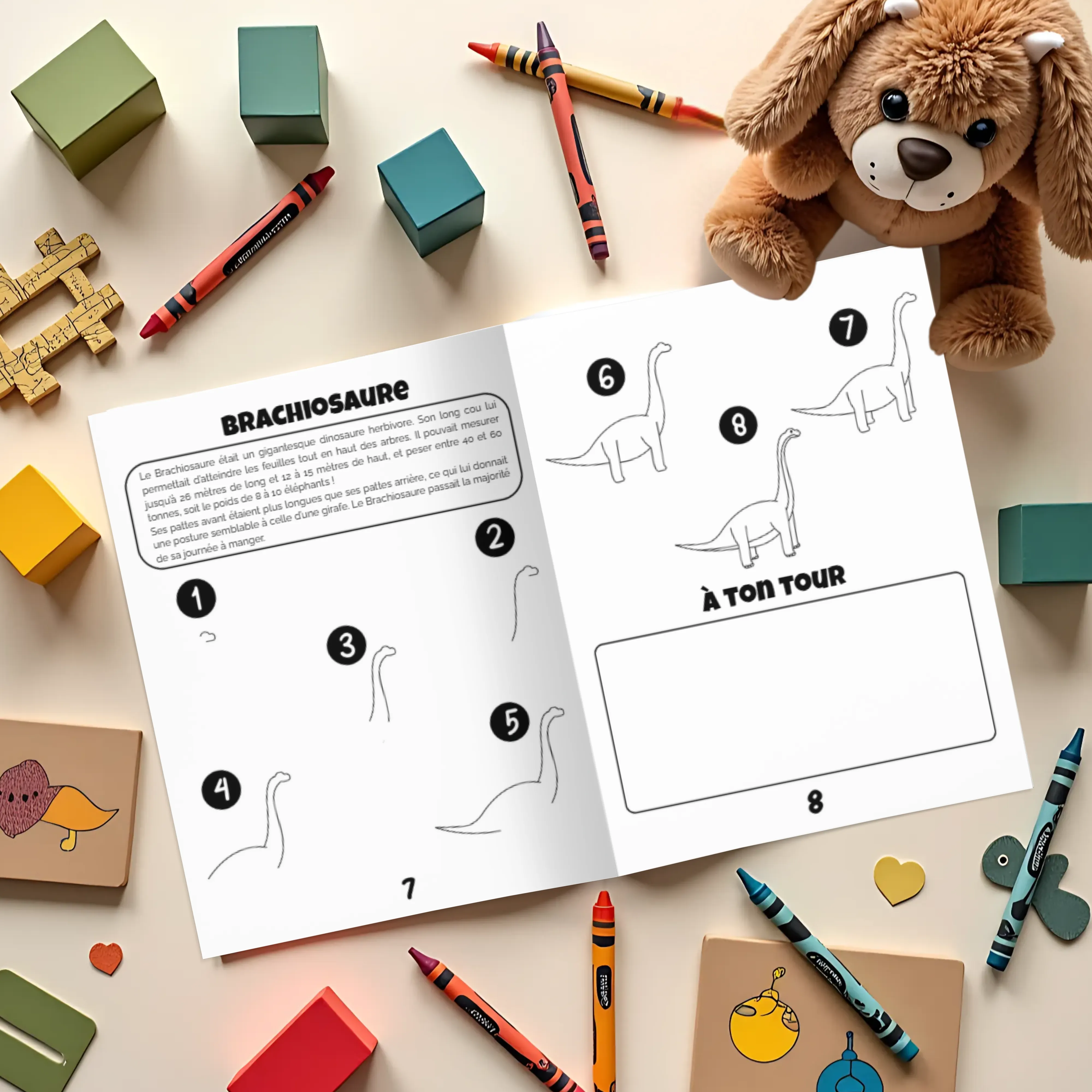 Avec plus de 80 pages et 40 dinosaures à dessiner pas à pas, Comment dessiner les dinosaures est un cadeau idéal pour les enfants de 6 à 10 ans. Grâce à une méthode en 8 étapes simples, les enfants apprennent à transformer des formes de base en magnifiques dinosaures tout en s’amusant. Chaque leçon comprend un dessin final à colorier, une zone d’entraînement pour pratiquer, ainsi qu’un fait amusant pour nourrir la curiosité.