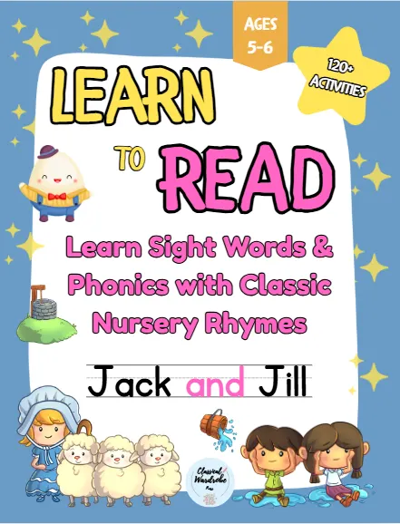 Learn to Read is a thoughtfully structured kindergarten reading workbook featuring over 120 playful activities focusing on sight words and phonics, all based on classical nursery rhymes. This workbook is rooted in Charlotte Mason’s gentle, classical approach.